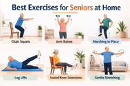 The best exercises for seniors at home include walking, chair squats, light strength training, balance exercises like heel to toe walking, and gentle stretching. Aim for 30 minutes of activity most days of the week.